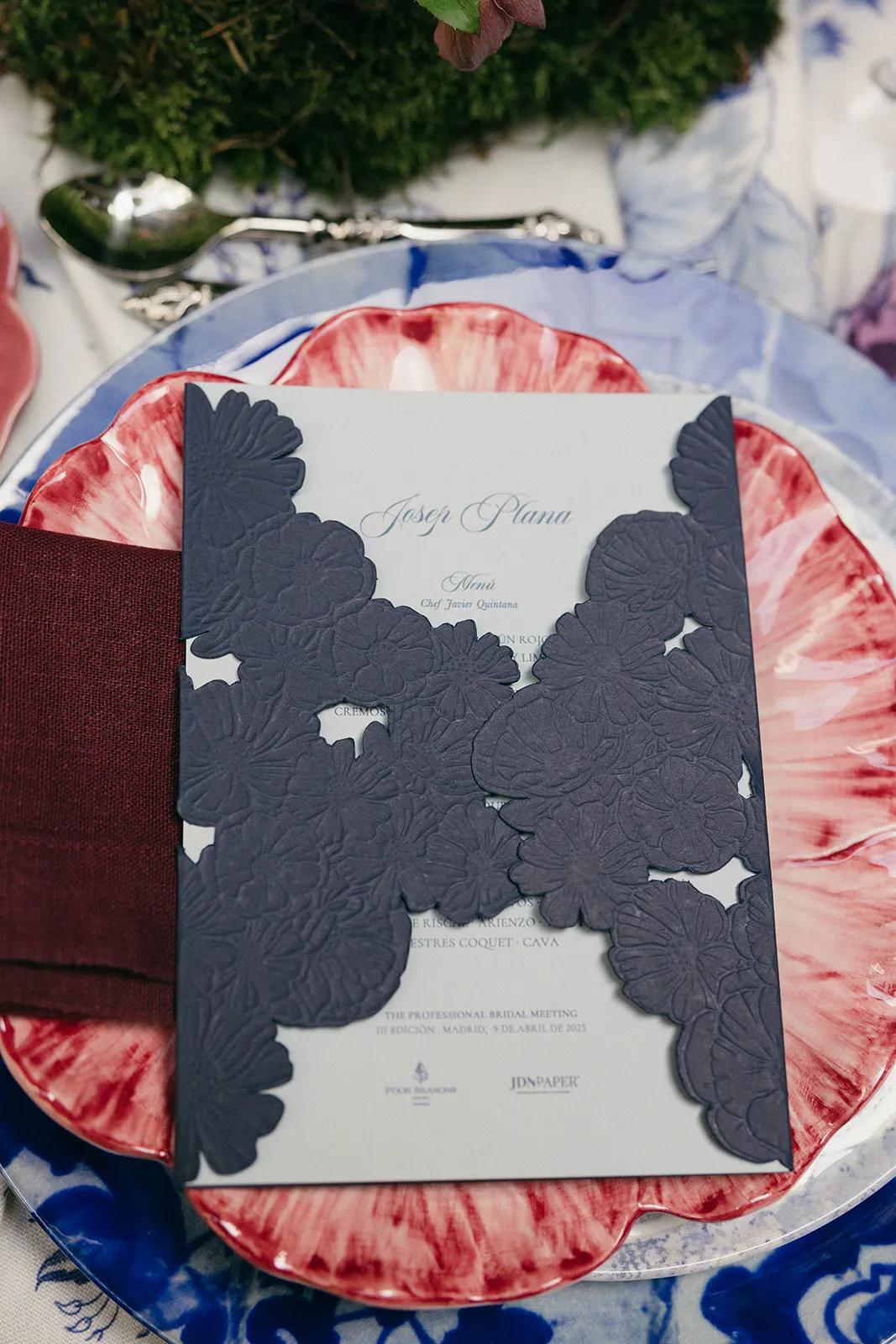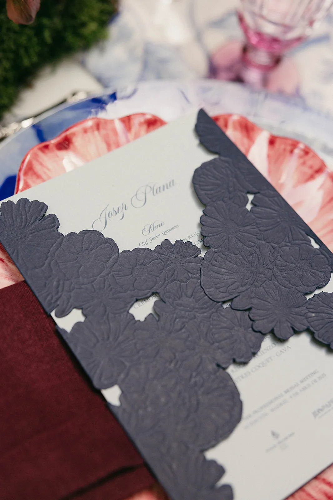 Una carpeta con motivos florales en relieve con un toque editorial, perfecta para abrazar tu papelería y convertirla en una pieza exclusiva.