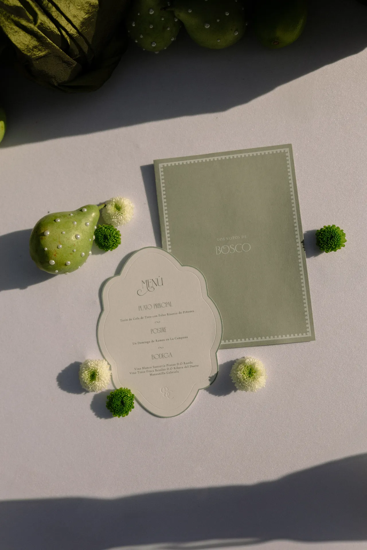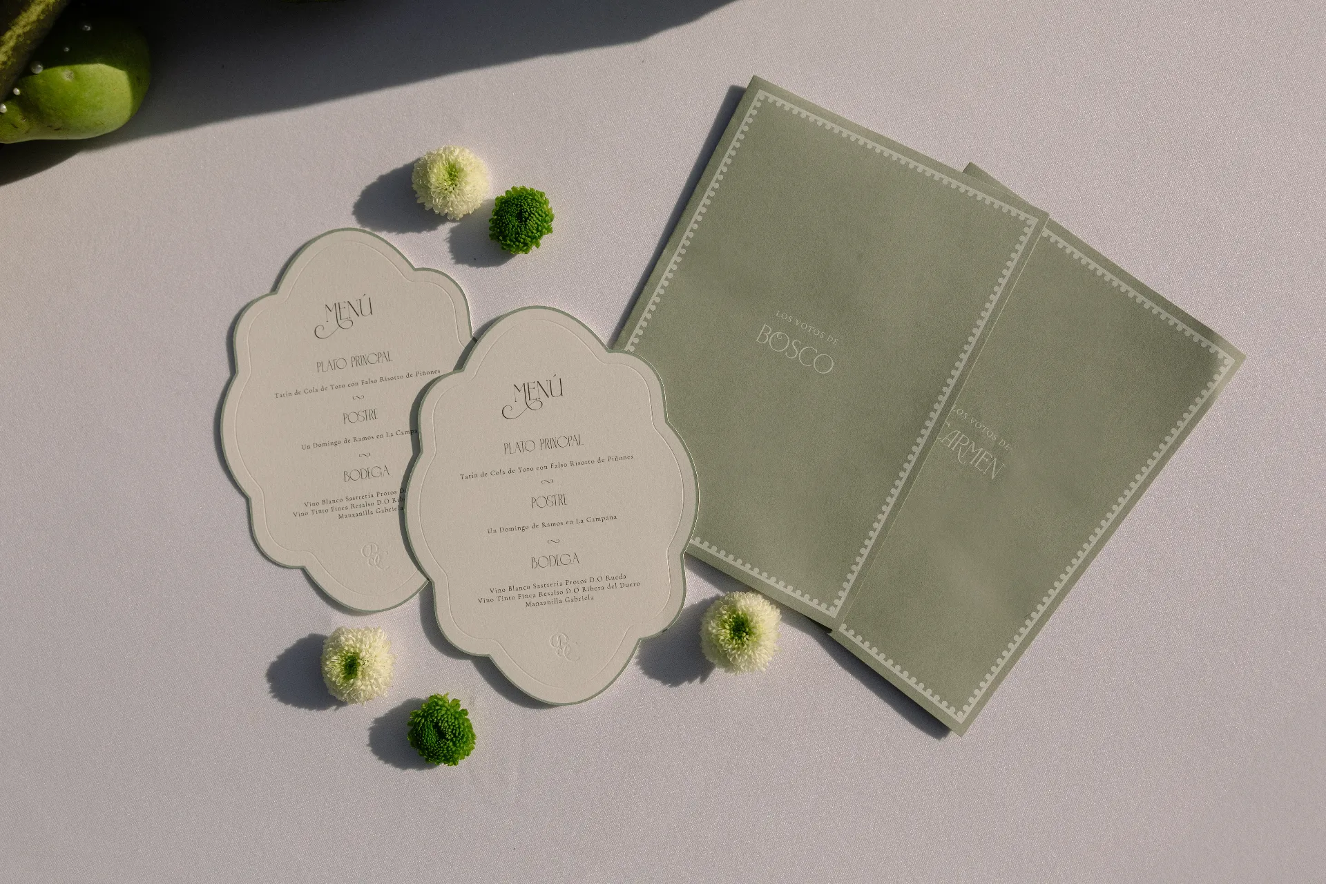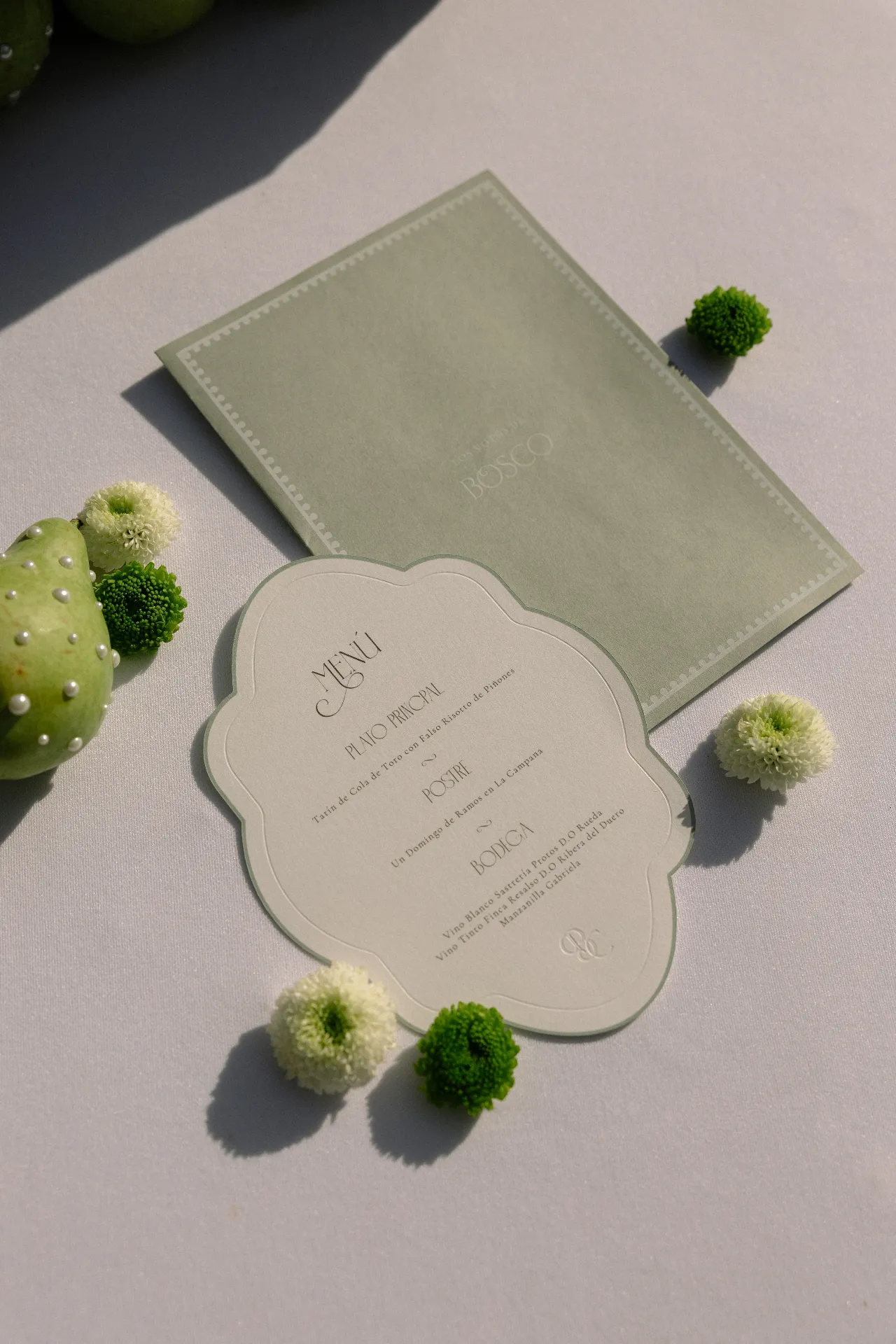 Papel: Alta calidad con textura 300grs./m2 color verdigris.