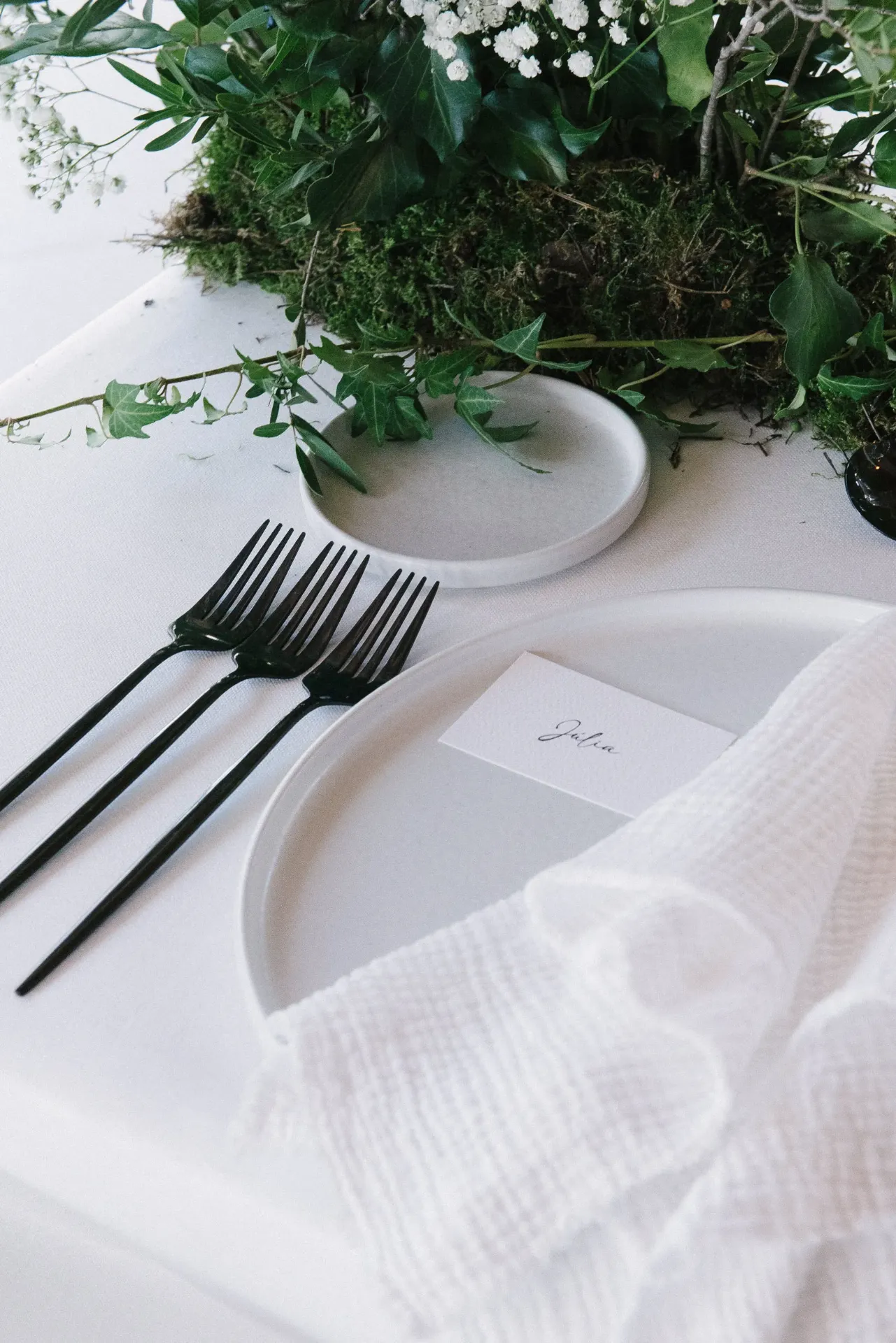 Tipografía sofisticada, diseño limpio y materiales cuidados que se integran con naturalidad en una mesa de estética refinada.