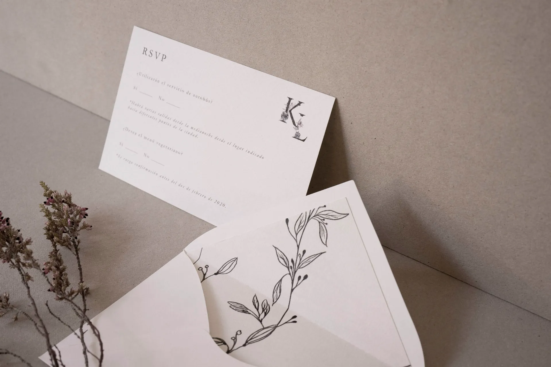 RSVP Iniciales Florales Black