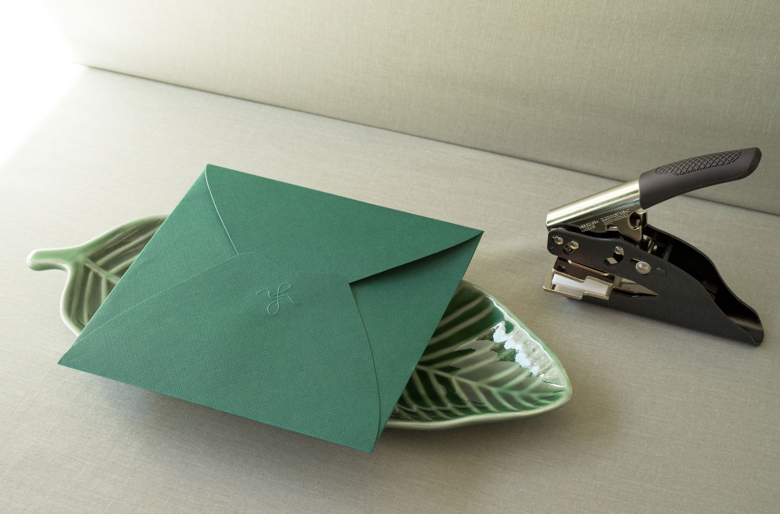 Este sello en relieve graba tus iniciales o emblema sobre el papel, dejando un relieve elegante y tangible que emociona al tacto.